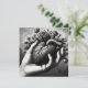 This vintage-style square card is a hauntingly beautiful expression of gothic love and romance, combining antique charm with a subtle edge of horror. At the centre of the illustration is a pale hand emerging from the grey, holding a heart with quiet reverence, cradled amidst a tangle of blooming flowers. The heart itself appears anatomical, rendered with striking detail, evoking both devotion and sacrifice. The flowers—soft, curling petals with slightly wilted edges—add an eerie contrast, reminding the viewer of beauty’s transience and the often painful nature of love. The design echoes the aesthetics of Victorian mourning art and old anatomical prints, blending romance and grief in a way that feels both timeless and emotionally raw. This is a card for those who see love not only in its sweetness but also in its complexity—where affection mingles with loss, longing, and intensity.