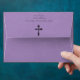Announce your special day with this elegant purple vintage gothic design with a vintage cross. This unique aged parchment style wedding invitation envelope is perfect for couples seeking a sophisticated, classic, or dark aesthetic for their memorable celebration. It sets a dramatic, vintage aesthetic and darkly romantic tone for your ceremony. Created by Simply Farmhouse Press.