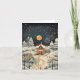 This seasonal vintage Gouache styled note card in wintry hues, features a lovely home up a winter lane with snow-covered pines, stars, snow and the moon in shades of blue and golden hues.