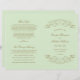 Decorative swirls and flourishes frame this elegant vintage inspired wedding ceremony program design. Pastel pistachio green background with antique gold design. Personalise the custom text for your bridal party, ceremony information, and thank you message. Note: these text weight paper programs arrive flat and require folding to assemble.