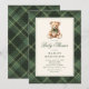 Vintage Green Plaid Classic Teddy Bear Baby Shower Invitation
