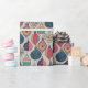 These retro and elegant Christmas wrapping paper feature a hand-drawn illustration of vintage Christmas ornaments in black ink against an elegant sage green background.