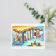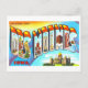 This is a reproduction of a vintage "large letter" travel postcard sending greetings from Des Moines, Iowa.
