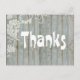 Say thanks in style! These rustic style postcards feature a thank you greeting in a fun font highlighted against a vintage distressed grey wood background with a fancy design in the corner.