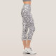 Vintage Grey White Willow Leaves Botanical Capri Leggings