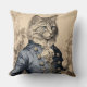 Vintage Grissaile Cat Gentleman Botanical Roses Cushion