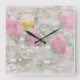 VINTAGE GRUNGE TULIPS SQUARE WALL CLOCK