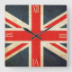 Vintage Grunge Union Jack Flag of UK Roman Numbers Square Wall Clock