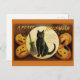 Vintage Halloween Black Cat and Carved Pumpkins Postcard