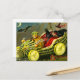 Holiday Postcard featuring Raphael Tuck & Sons Hallowe’en Postcard Series (1908). A classic black cat and witch ride in a traditional vegetable car. A smiling pumpkin man is driving and a spooky black bat flies in front of a crescent moon. Wonderful for Halloween lovers and old-timey collectors!