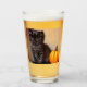 Glass Tumbler featuring a Halloween black kitten illustration. An adorable black kitty sits next to an orange pumpkin. A spooky gift for cat lovers and Halloween enthusiasts!