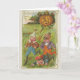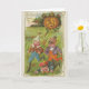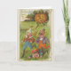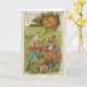 An unusual vintage picture of 3 strange looking children (could be elves) running away from a pumpkin that is chasing them. The inside of this card has been left blank awaiting your personal touch.