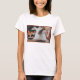 Halloween womens shirt with a vintage image from 1911 of a little girl in nightgown holding a candle to a mirror to see a ghost behind! The spooky ghost is a trick from a little Halloween sprite. Something different and unique for a Halloween party.