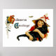 Vintage Halloween Greetings illustration showing a girl with a black cat.