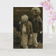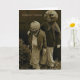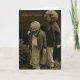 A vintage photograph featuring two children, probably siblings, dressed for Halloween in baggy, over-sized clothing and incredibly gruesome and scary Jack-O-Lantern heads, one with sharp fangs. The front of the card says, "Gruesome Twosome" and the message inside the card is, "Fangs for the memories and nightmares."