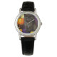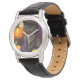 Watch featuring a vintage Halloween kitten! A fluffy black kitty poses next to pumpkins against a purple background. A fun gift for Halloween parties and cat lovers!
