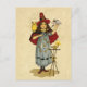 In this image recreated from vintage Halloween ephemera, a girl dressed as a witch with an owl on her shoulder performs magic.