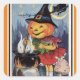 Vintage Halloween Pumpkin Witch Girl Square Sticker