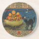 Halloween Pumpkins Jack-O-Lantern Black Cat - This antique illustration of a black cat and halloween pumpkins make a spooky Halloween gift. The image came from an antique Halloween postcard. This Scary Halloween card features three funny jack-o-lantern pumpkins. The carved pumkins are sitting on a big watermelon, out in a Halloween night with a black cat. There is a crescent moon in the background, setting the mood for a scary Halloween party. The black cat hisses as he sees the pumpkins.