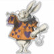 A Halloween themed vintage style White Rabbit, dressed as a Herald, from Alice In Wonderland, in shades of Orange, Black and Purple.