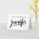 Vintage handwritten name Jennifer Happy Birthday cards. Personalised greeting cards with name Jennifer. Custom cards for women and girls. Elegant hand lettered script typography design. Pretty black and white modern calligraphy handwriting artwork. Unique gift idea for mum, mother, sister, daughter, friend, wife, aunt, grandma, co worker, cousin etc. Beautiful template design.