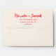 A retro modern hand written bright red and cream wedding envelope. Which features bold whimsical bride and groom's names in vivid red and creamy background colour. And personalised return address . Which suits the whole wedding suite.