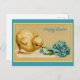 Vintage Happy Easter Chick with Blue Flowers Postcard