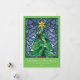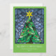 These bright and colourful 5" x 7" flat Christmas greeting cards feature a handmade watercolor stained glass window design of a green Christmas tree with a gold star and red ornaments framed in shades of blue on a parrot green background The editable greeting is "Merry Christmas," with placeholders for your name and year. The back has the editable message, "Wishing you peace, love and joy this holiday season."