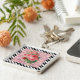 Pretty vintage pink roses botanical illustration on pink floral background with black and white chequerboard pattern border creates a lovely garden theme design.