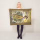 A charming vintage fleece blanket featuring a travel poster from United Air Lines of a hula dancing Hawaiian woman.