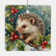 Vintage Hedgehog Among Holly Christmas Ceramic Ornament