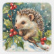 Vintage Hedgehog Among Holly Christmas Square Sticker