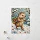 A sweet vintage-style Christmas artwork featuring a hedgehog carrying a festive berry basket through the snow. A whimsical and nostalgic winter scene perfect for holiday cards and gifts.
