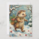Vintage Hedgehog with Christmas Berry Basket Holiday Card