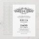 Vintage heraldic crest with initials wedding invitation. It features a black and white floral frame with your monogram in a heralic crest and flowers, leaves and pomegranates. The back is covered with black and white polka dot pattern.