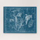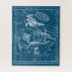 Vintage French constellation chart, known as ' Hercules and Corona Borealis' - white star chart overlay on blue background