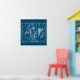 Vintage French constellation chart, known as ' Hercules and Corona Borealis' - white star chart overlay on blue background