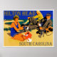 A retro poster that never was until now. A recreation of an old poster that should have been. A Hilton Head Beach, vintage style beach scene from the art deco era. Bright colors with a woman on the beach sun bathing in a blue one piece and two friends drinking a beverage with her. The man has brought his golf clubs to the beach. Blue sky and sand. Exclusive to the Retro_Art Zazzle Store.