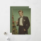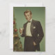 A refined vintage-style portrait of a man in a classic black tuxedo, standing beside a decorated Christmas tree. He holds a martini glass with relaxed confidence, embodying mid-20th-century sophistication and festive charm. The muted green backdrop and soft lighting enhance the timeless, cinematic atmosphere of an elegant holiday celebration.