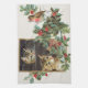 Vintage holly cats and bird tea towel