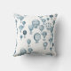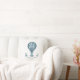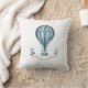 Decorate your home with a whimsical vintage hot air balloon throw pillow. A dramatic single balloon floats above a banner that reads "flights of fancy" while balloons in flight sail across the other side. In blue and white.