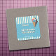 A food label sticker to sell or offer your homemade delicacies. It comes with an illustration of an ice cream cone with multiple scoops in a vintage style, all on a light blue and beige striped pattern.