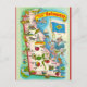 Colourful, full of illustrations, an old postcard map showing landmarks in the state of Delaware.