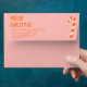 a vintage retro minimalist simple red Merry Christmas holiday envelope. As you see it features a plain pink warm colour background with beige and red handwritten script typography of Return address info. Along with your return address. And hand drawn and illustrated beige and red Christmas candy bar.