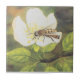 A vintage, antique illustration of a bee on a white flower. Floral nature image, spirng, summertime design.