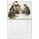 12 month vintage illustration business calendar featuring various occupations including firemen, mailman, construction workers, architects, businessmen, secretary, and a switchboard operator.