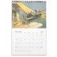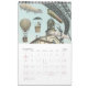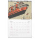 Vintage illustration science fiction calendar featuring a variety of steam punk urban city scenes from the future, futuristic cars and other flying machines, people, etc.