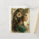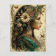 This art print features a vintage-inspired portrait illustration of a bohemian woman. The design is printed on a worn-looking, faded vintage background giving it an authentic vintage timeless and classic feel. Perfect for adding a touch of nostalgia to any room in your home or office