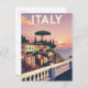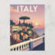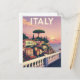 Capture the romantic beauty of Italy with this vintage-style postcard featuring a stunning Italian seaside village at sunset. The design, reminiscent of classic travel posters, showcases charming coastal homes, lush greenery, and the iconic Italian umbrella pine against a soft, colourful sky. Perfect for anyone who loves Italy, the Mediterranean, or vintage travel art. This postcard is ideal for sending a special message, collecting as a souvenir, or framing as a beautiful piece of retro wall art.