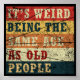 Funny sarcastic quote design " It's weird being the same age as old people". Humourous joke for dad, mum, grandma, grandpa, coworker, friend, daughter, sister, brother, son, uncle… Perfect gift idea for sarcasm and sarcastic sayings lover, grab this as gift of birthday, mother's day, father's day, back to school, teacher's day,